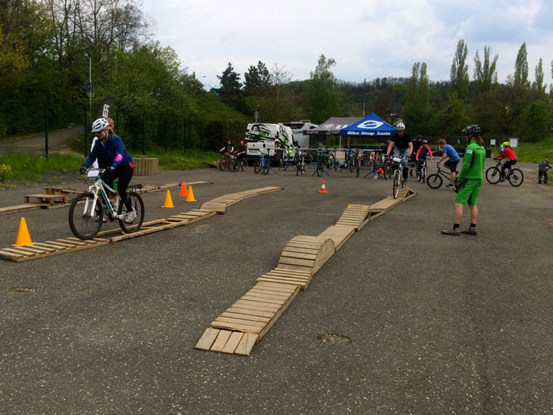 A-park má dobře dosažitelnou polohu v Praze. Je tam klid na ježdění a v okolí cyklostezky. Už jsme tam pár akcí dělali a víme, že tam máme dost prostoru trénovat základní dovednosti, je tam i trochu terénu na pilování výjezdů a klopenek a je tam taky dřevěný pumptrack. nám dá pohodu na trénink základů. V dopoledním bloku se budeme věnovat správnému postoji na kole, práci s vaším těžištěm, ovládání kola skr pedály, rovnováze, brzdění, pohledu a rytmu jízdy. Po obědě zkusíme naše překážky, které prověří tyto dovednosti v trochu těžších podmínkách. Budeme jezdit výjezdy, sjezdy, učit se zvedání předního a zadního kola a další prvky. Samozřejmě i tady vám půjčíme obyčejné pedály (platformy) a na nich se budeme učit. Věřte nám, že je to mnohem lepší cesta pro lepší výsledky výuky a pro vaše další dovednosti.